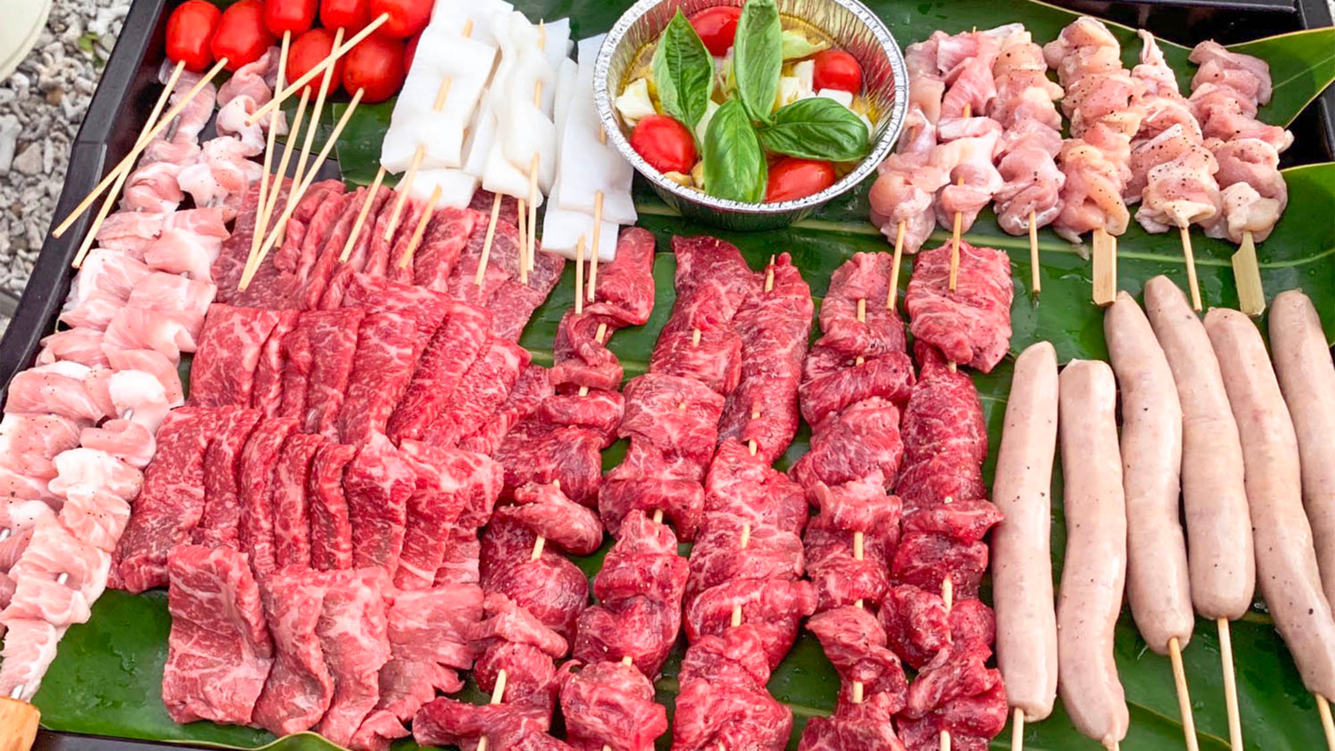・【BBQイメージ】食欲をそそる串焼きスタイル
