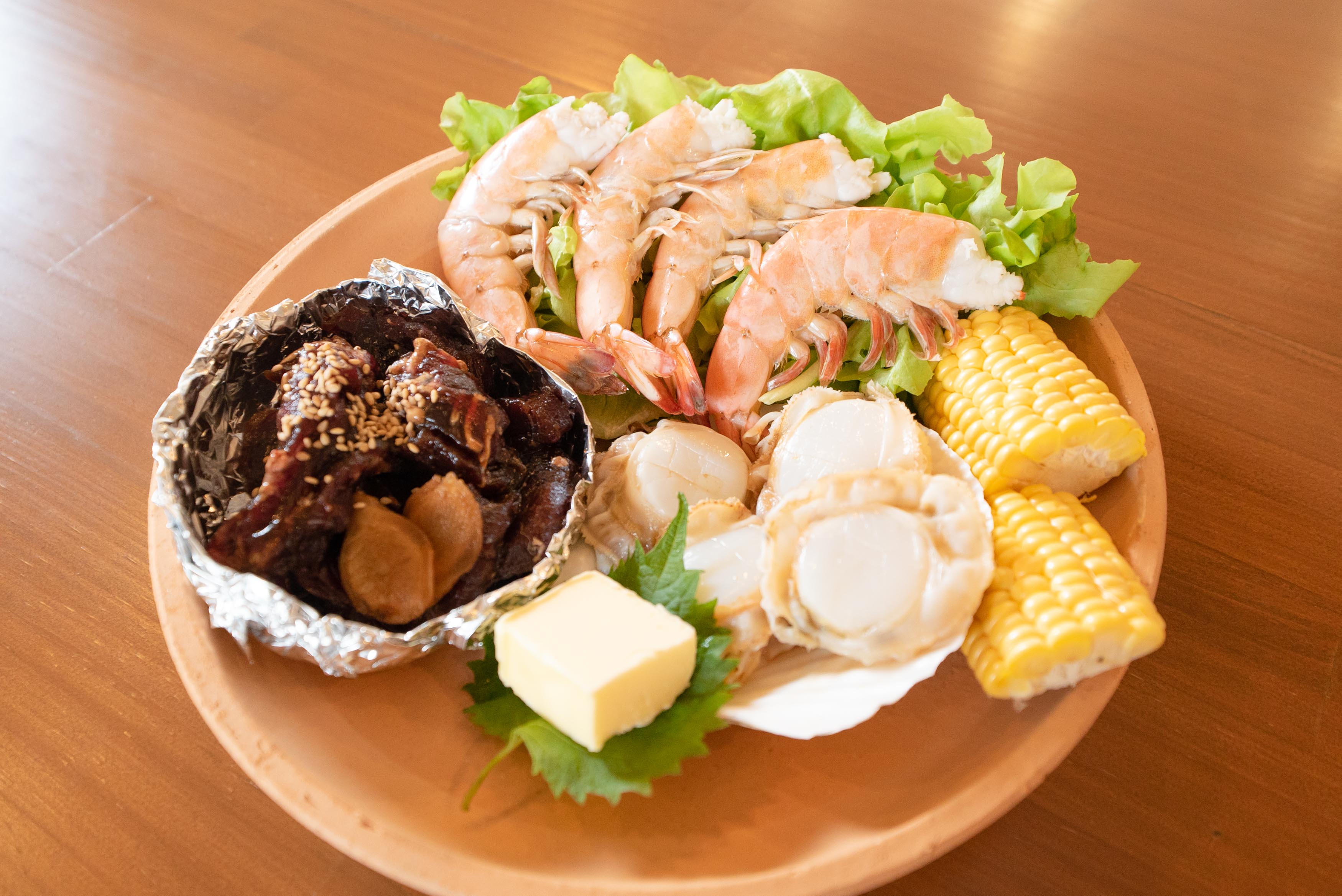 旬菜バーベキュー:シーフード付きプラン シーフードの例