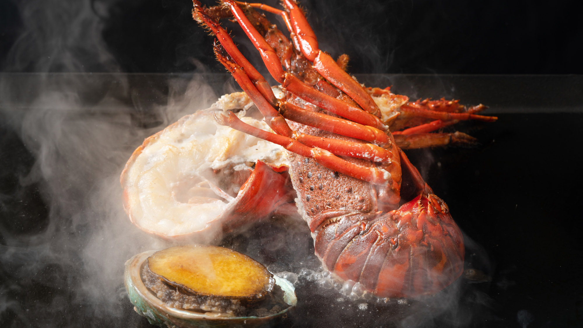 ・【夕食】ラグジュアリーコースには海の幸の鉄板焼きが付きます。季節や仕入れにより内容は変わります