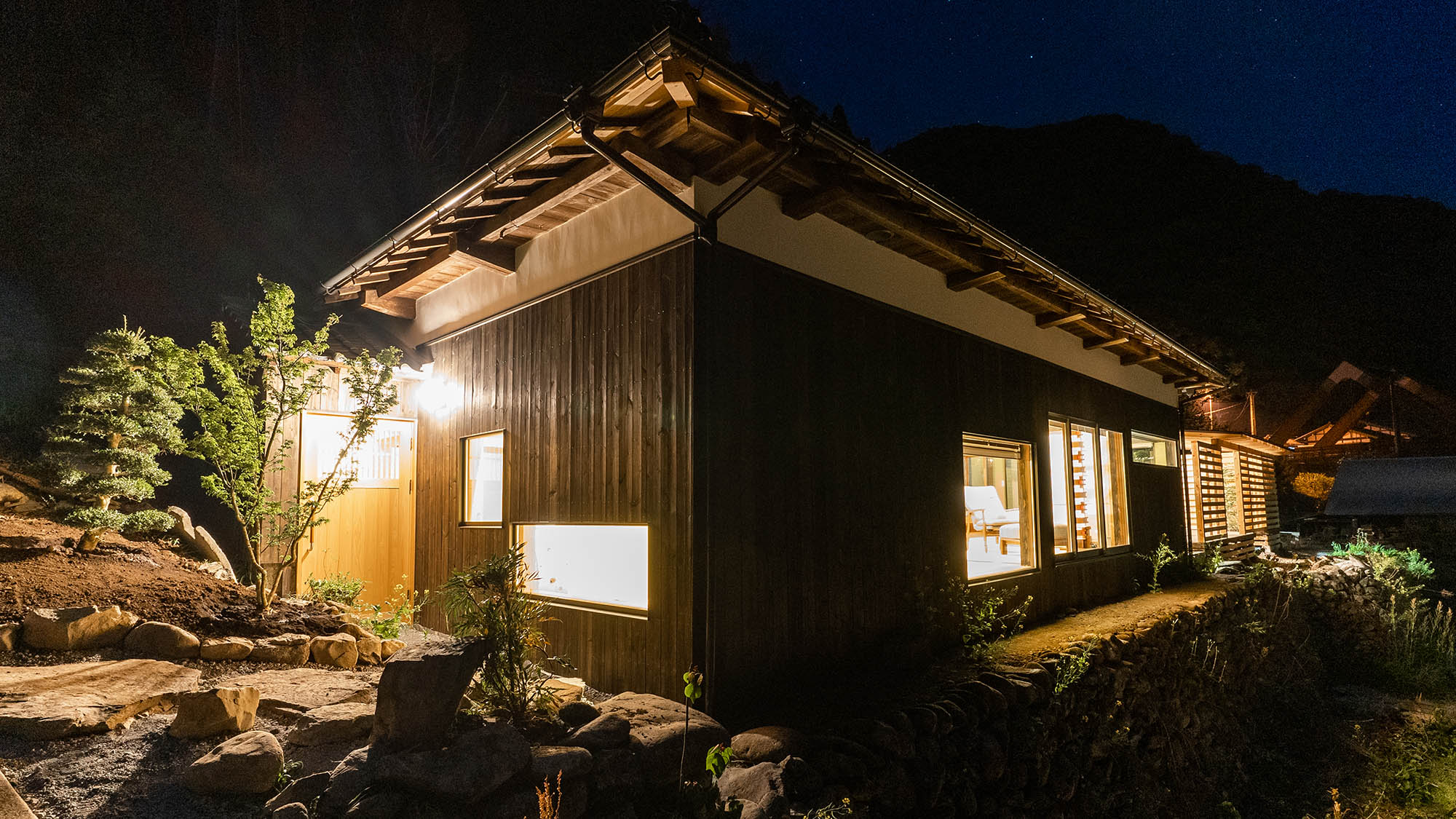・【外観】温かい光がこぼれる一棟貸し。日常を忘れ心身ともにリラックス
