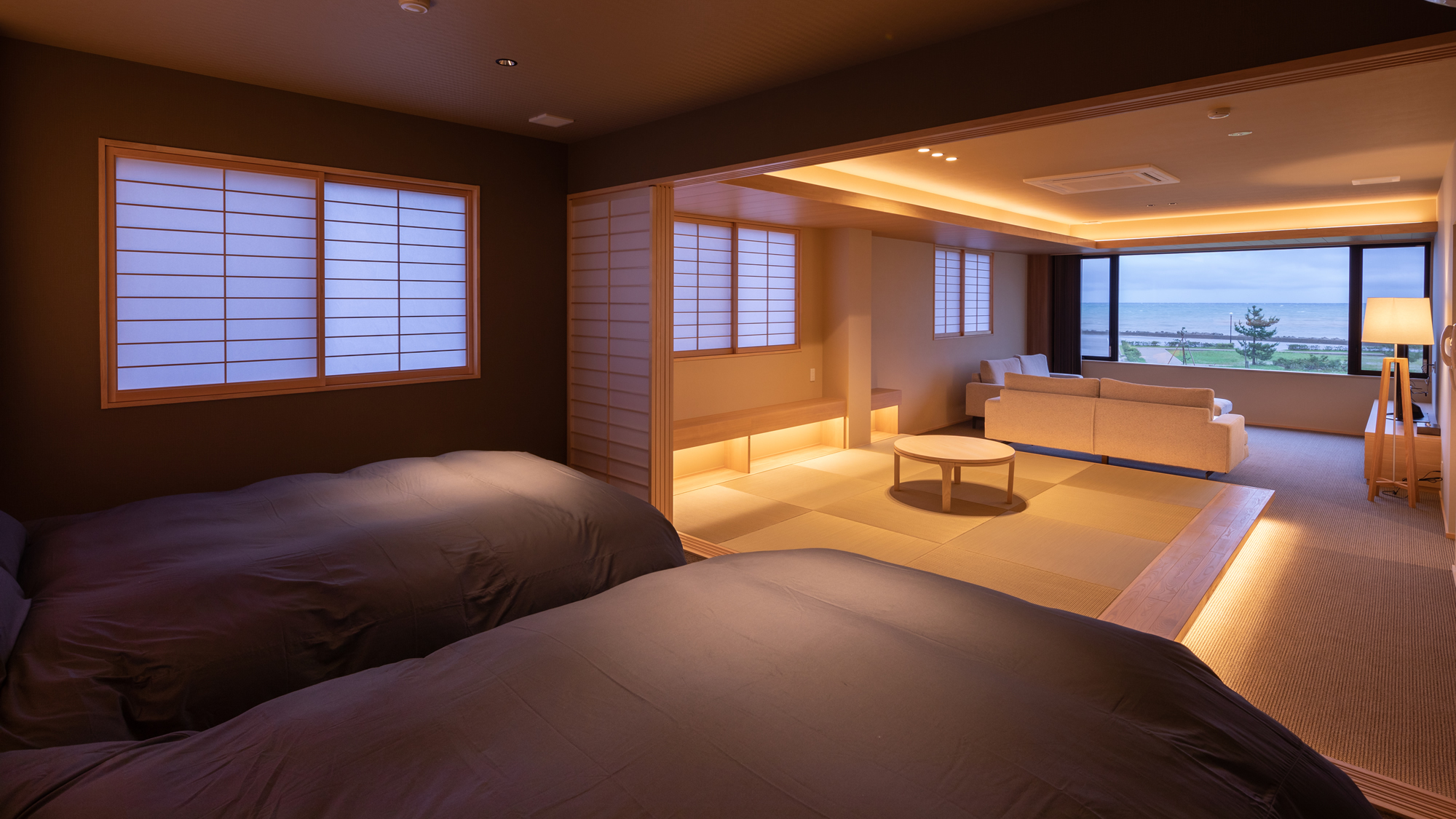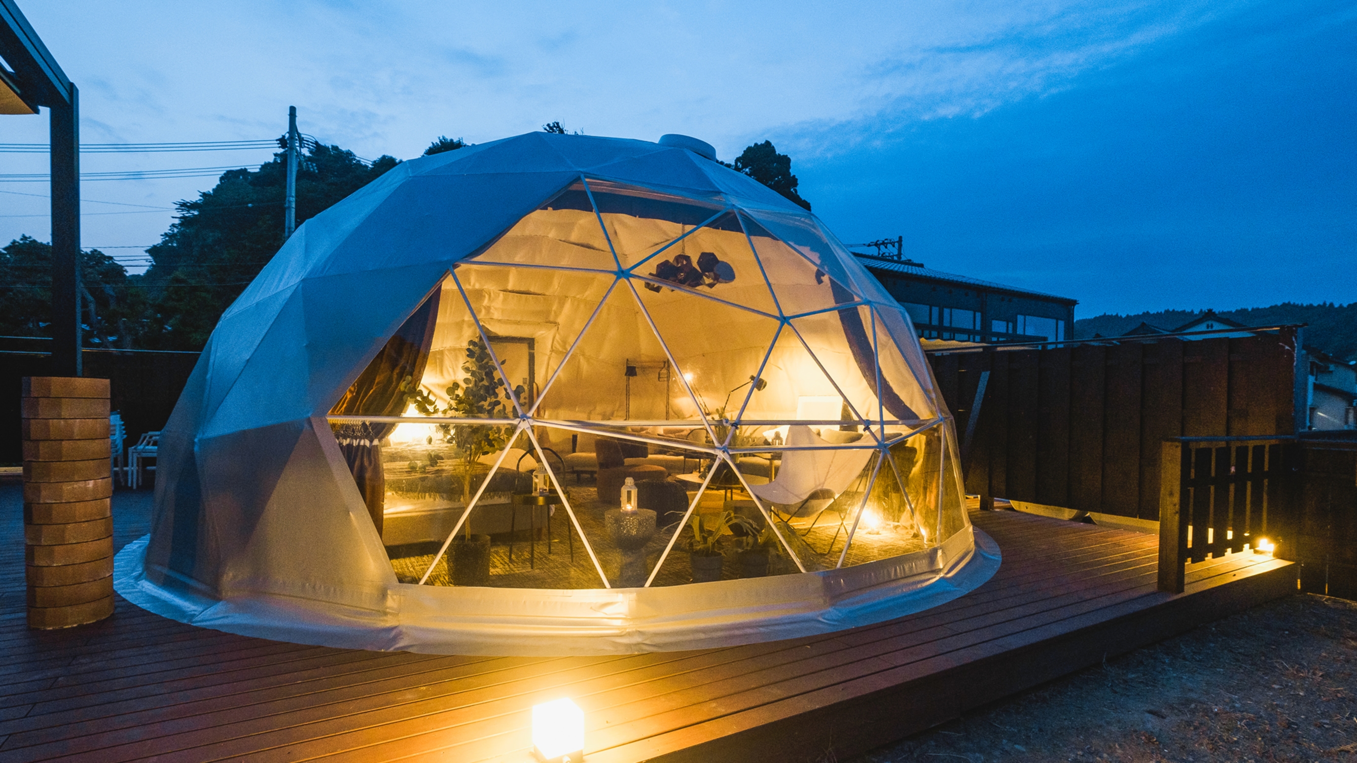 グランピングスイート「モダン」 日が暮れると昼とは違ったイメージになりますね