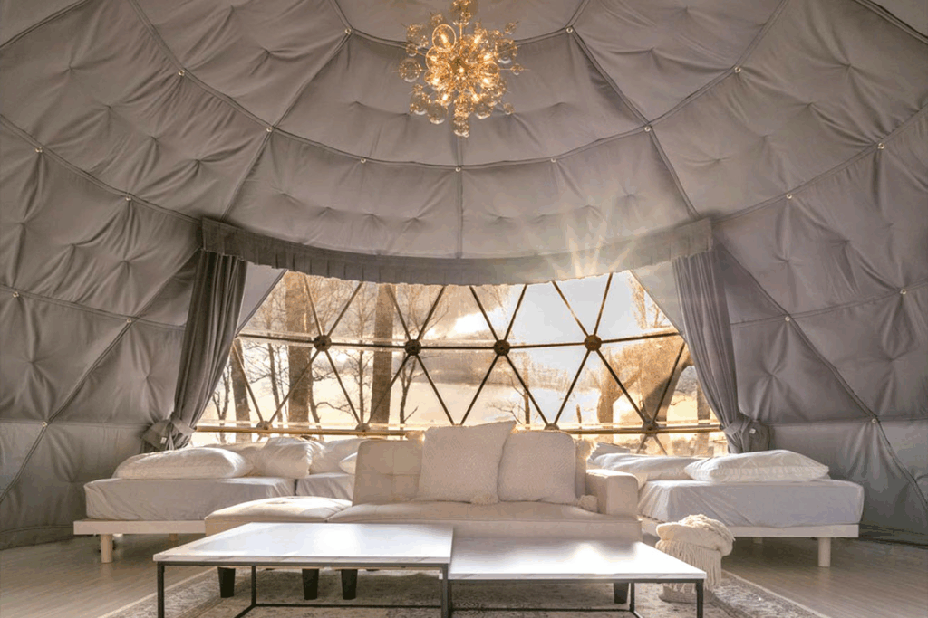 「そととまり帯広音更」に到着すると、まず目に飛び込むのは広大な草原と森の景色です。施設は自然に溶け込むように配置され、テントやキャビンが点在しています。静かな環境の中で、風の音、鳥のさえずり、川のせせらぎが日常の喧騒を忘れさせ、心を穏やかに包み込みます。テントやキャビンの内部は快適さを重視して設計されており、ベッドや調度品、照明など細部まで配慮が行き届いています。アウトドア初心者でも安心して滞在でき、自由に過ごす時間を満喫できます。