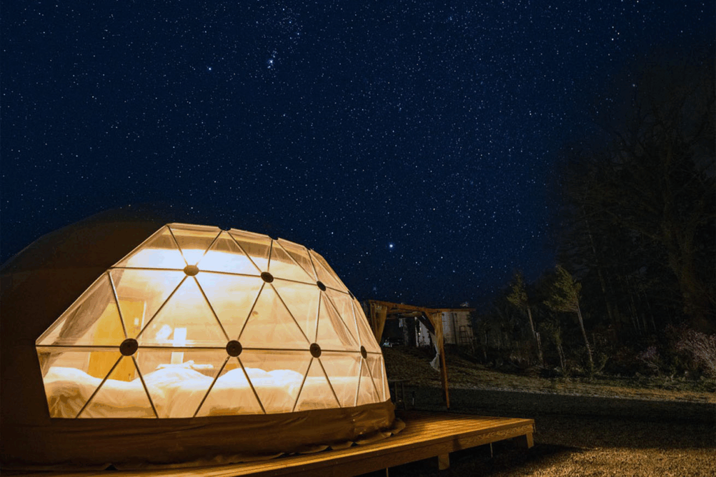 夕方になると、施設内のバーベキューエリアや焚き火スペースで過ごす時間が始まります。地元食材を使ったBBQやオリジナルメニューを囲み、火の音や香りとともに会話を楽しむ時間は、家族や友人との距離を自然に縮めてくれます。焚き火の炎が揺れる様子を眺めながら、夜空に浮かぶ無数の星々を楽しむことができます。空気が澄んでいるため、流れ星や天の川も鮮明に見え、自然の壮大さを全身で感じることができます。夜の静けさと星空の景色は、日常では味わえない特別な体験です。