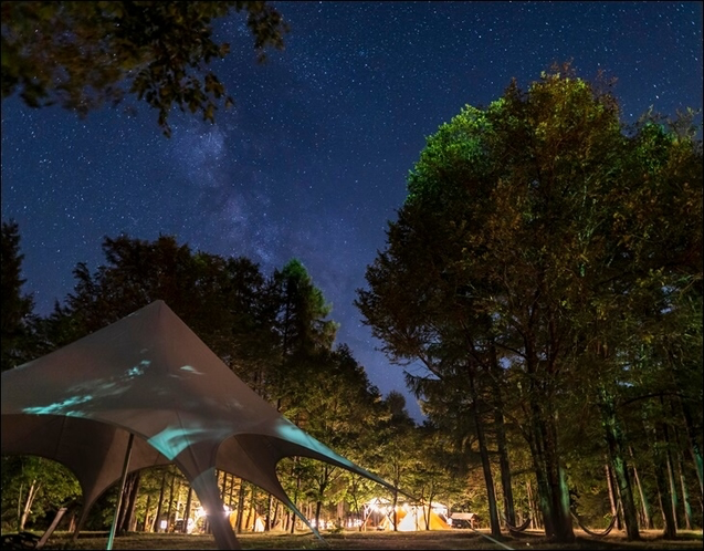 夕方にはバーベキューや焚き火体験が始まります。施設内の専用スペースで地元食材を使ったBBQを楽しむことができ、火の音や香り、森の風景と共に会話が自然と弾みます。焚き火の周りで過ごす時間は、仲間や家族との距離を縮め、夜空に浮かぶ無数の星々を眺めながら日常では得られない特別な体験を提供してくれます。人工の光が少ない環境のため、流れ星や天の川もはっきり見え、自然の壮大さを五感で感じられる贅沢なひとときです。