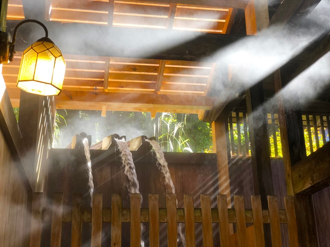 白布温泉の湯は、湯量豊富な高温硫黄泉。源泉がそのまま木の浴槽に流れ込み、湯船の縁から絶え間なくこぼれ落ちます。その音が“湯滝”と呼ばれる所以。温泉の香りはやや強めですが、それがまた身体を包み込むようで心地よい。まるで大自然の息吹をそのまま浴びているようです。