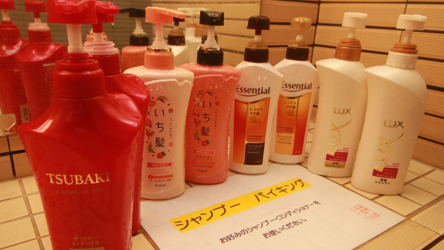 #館内アメニティ_女風呂には各種シャンプー・リンスをご用意しております。