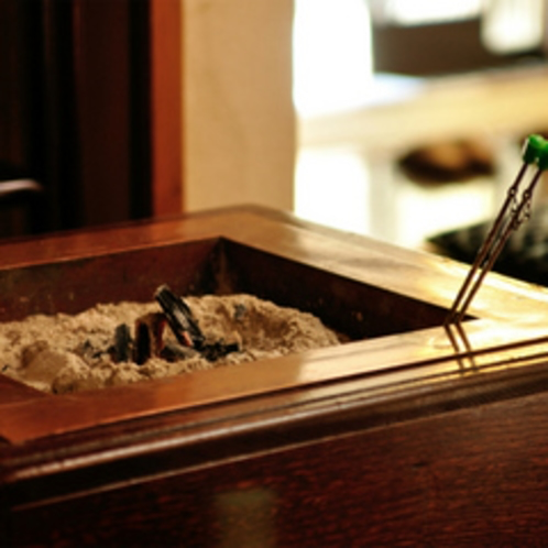 朝食後には炭をおこした火鉢を囲んで珈琲をどうぞ。