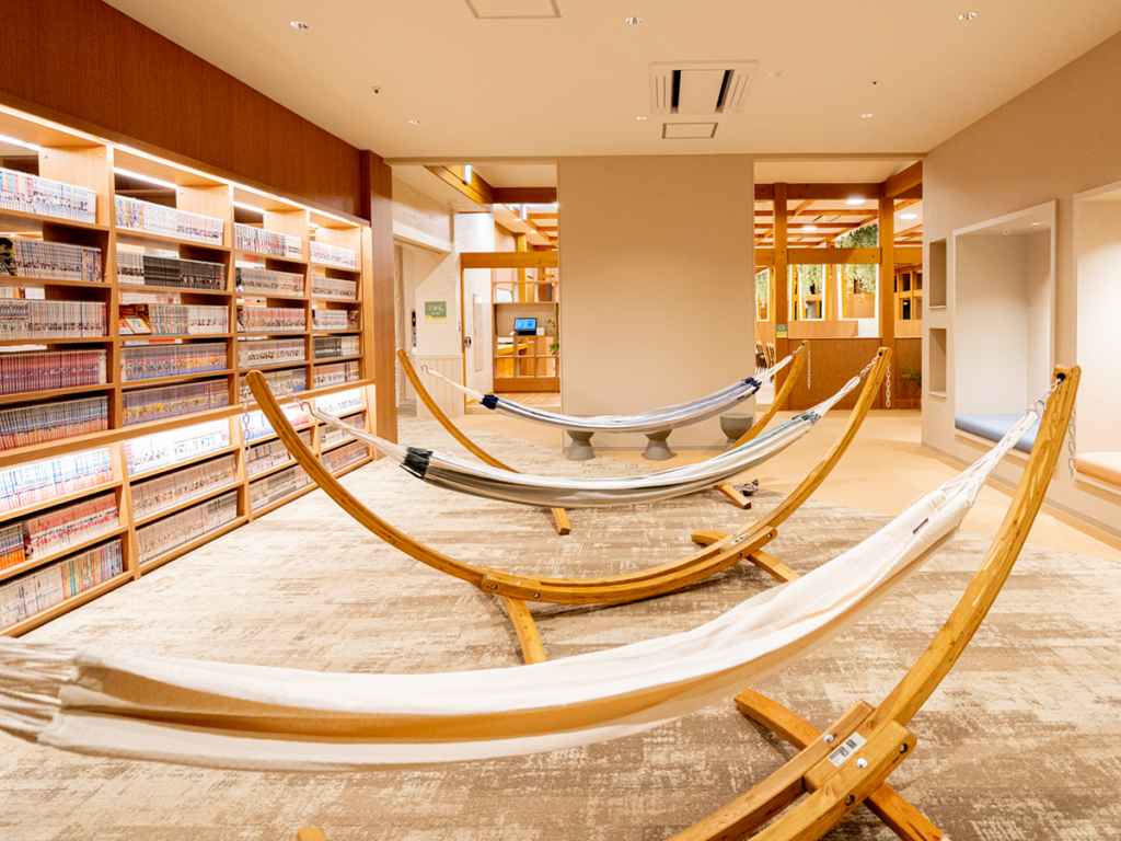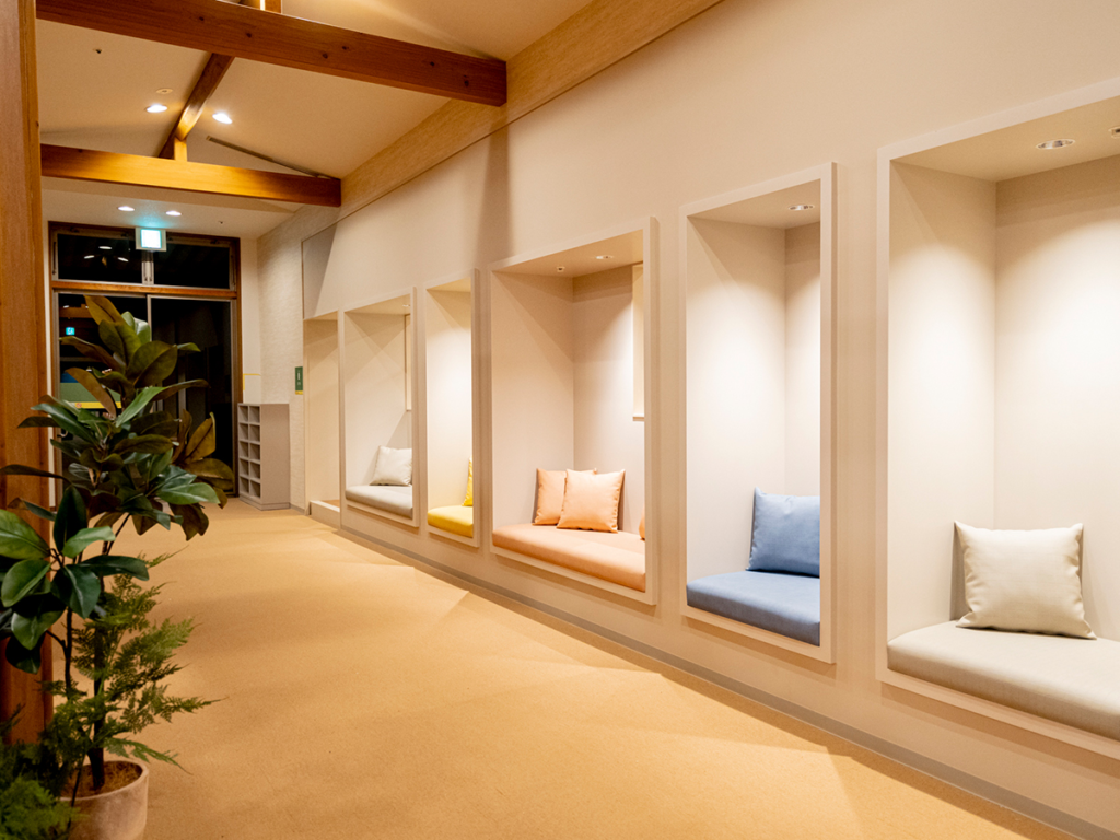ご夫婦で来ても、それぞれが別の場所で過ごして、また同じタイミングで戻ってこられる。そんな距離感がちょうどいい。休憩スペースでは本を読んでもいいし、何もせず天井を見ていてもいい。会話は「次どうする?」じゃなくて、「今、ちょうどいいね」に変わっていきます。