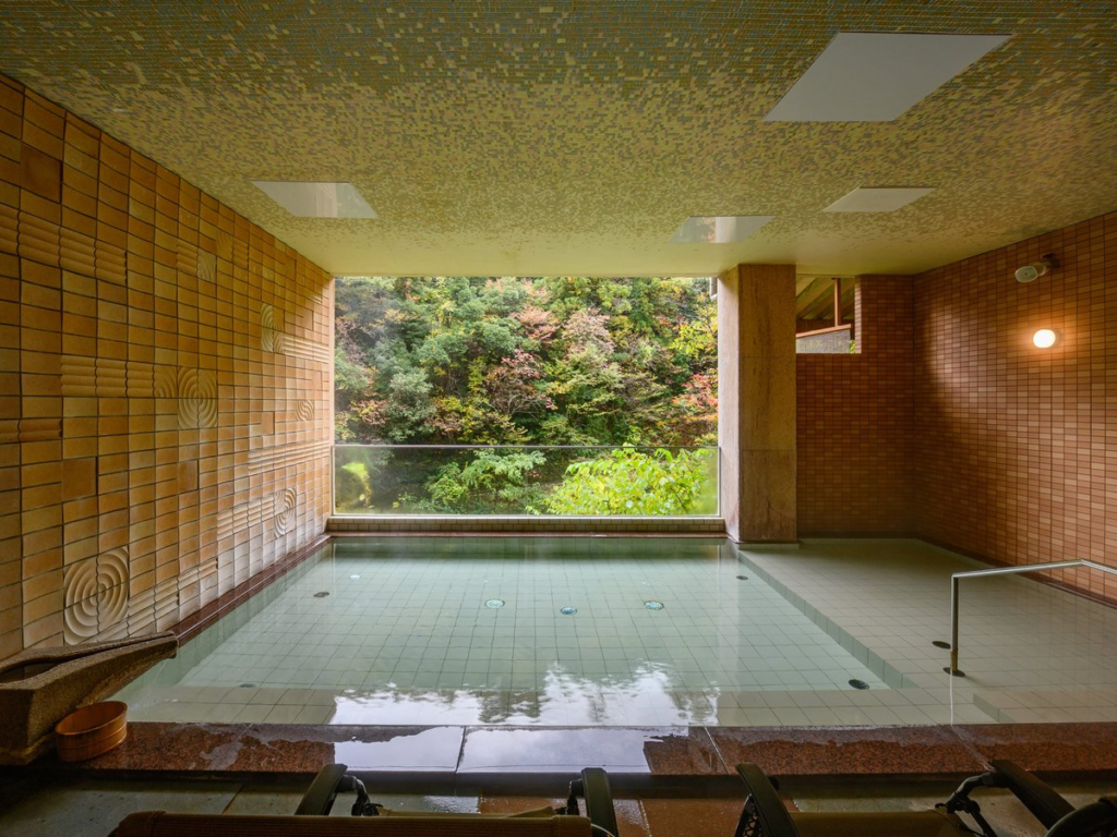 俵屋は1190年創業の老舗で、加賀温泉郷の文化を体現している。木造建築の館内は落ち着いた空間が広がり、廊下や階段からは歴史の重みが感じられる。大浴場、露天風呂、貸切風呂など、多彩な温泉施設が揃い、どの浴場も肌に優しく、ゆっくり浸かることで日々の疲れを忘れられる。