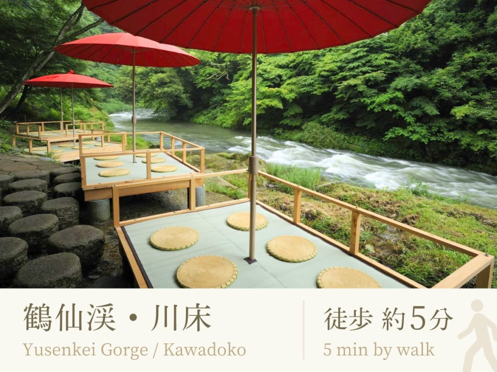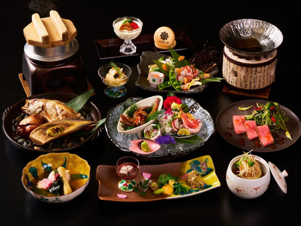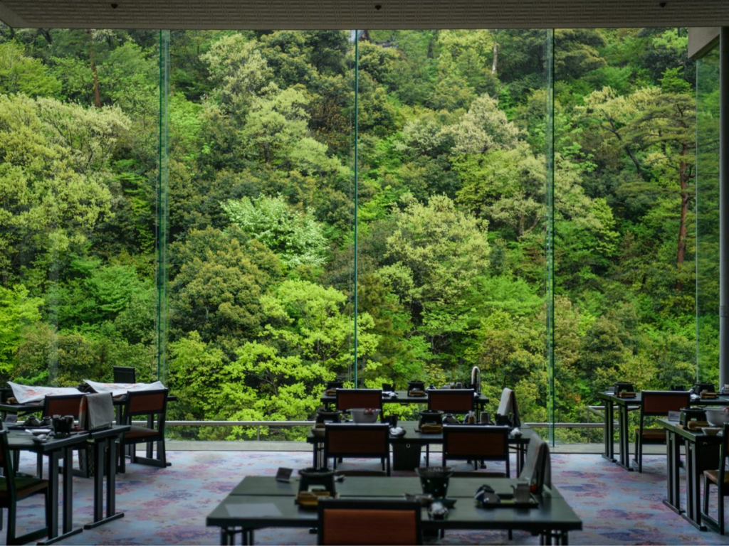 客室は畳敷きの和室が中心で、窓からは庭園や山の景色が望める。季節の移ろいを感じながら、窓際でお茶を楽しむひとときは特別だ。料理は地元の旬の食材を用いた懐石で、川魚や山菜、地野菜が繊細に盛り付けられ、視覚と味覚で加賀の四季を体感できる。館内の廊下や階段を歩くたびに、木の香りや軋む音が心地よく、過去と現在をそっと結ぶように響く。