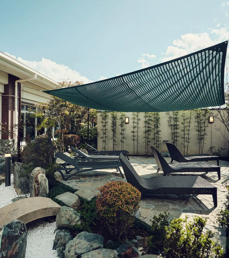 A thoroughly hot sauna, a pleasantly warm cold bath, and an open-air bath with views of the sky.
